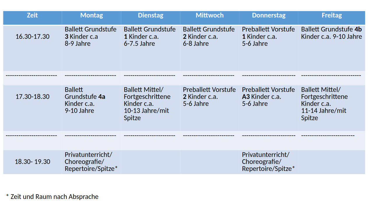 Stundenplan ab Januar 2019. Änderungen vorbehalten!